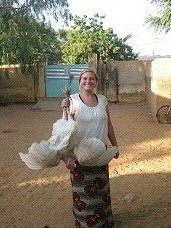 We have these wonderful missionaries from Iowa who live here in Linguere, Senegal and they are just way to kind and generous to us. They decided this year that they wanted to host Thanksgiving and invited all 14 of us to their house for the holiday. We decided that for their generosity, we would buy a turkey for the missionairies to cook. I don’t know which one us came up with this idea but we obviously forgot that they don’t sell Turkeys here like they do back in America. They are not already killed, skinned and packaged like they are in supermarkets. The day before Thanksgiving, Abby (volunteer) showed up to the house with this giant, white, live turkey that we all had helped pay for. I took one look at it, noticed it was alive and asked “Why is not dead.” Abby then explained that we would be having to kill and clean this turkey because that part was not negotiated into the price of the turkey and the guy wanted some extra ridiculous amount to do the work for us. So Abby then just assumed that someone at the house surely knew how to kill a Turkey…boy was she wrong. We all took one look at it and said in unison “I’m not killing it!” We spent about an hour trying to figure out who would be the one to kill it. Justin and Abby both manned up and decided that they would do the biding but first they had to google “how to kill a turkey.” They brought out our biggest knife we had and sharpened it as best they could. It took two other people along with Justin to hold down the turkey while Abby got ready to strike the turkey in the neck (I wanted nothing to do with this…I can barely kill anything, except insects, I’ve gotten very good at that since I’ve been here). Abby’s first chop didn’t even make a dent in the turkey’s neck…she tried again and it barely cut the turkey’s neck. Now the turkey started to freak out and tried to flop out of everyone’s grip. I felt so bad for the turkey..it was so painful to watch the poor thing suffer like this. Abby had to re-sharpen the knife and then went at it another two times before she could chop the head off. As soon as the head fell off, everyone let go of the turkey thinking it was all over, we couldn’t have been more wrong because as soon as they all let go, the turkey’s body started flopping around on the ground. Everyone started running away screaming, while blood was flying everywhere from the flopping turkey body. It was hilarious, I wished I had a video camera to record it. We had no idea that once you cut off the head of the turkey the body would continue to move and flop…google didn’t mention that part. Finally we got a hold of the body and after a couple minutes it had stopped moving. I will never forget that, the people of Linguere must of thought we were crazy or dying..we had so many people come check on us to see if everything was alright. The dogs had a field day with that turkey…they got to eat all the bones and intestines of it. Even little Nala got her fair share although I’m pretty sure she eat way too much for her belly was sooo bloated!
